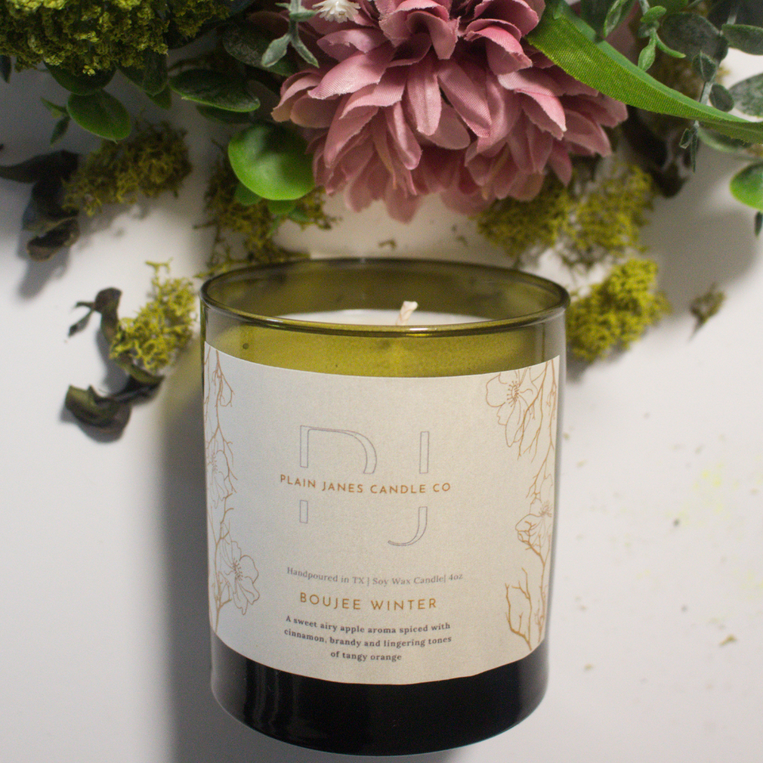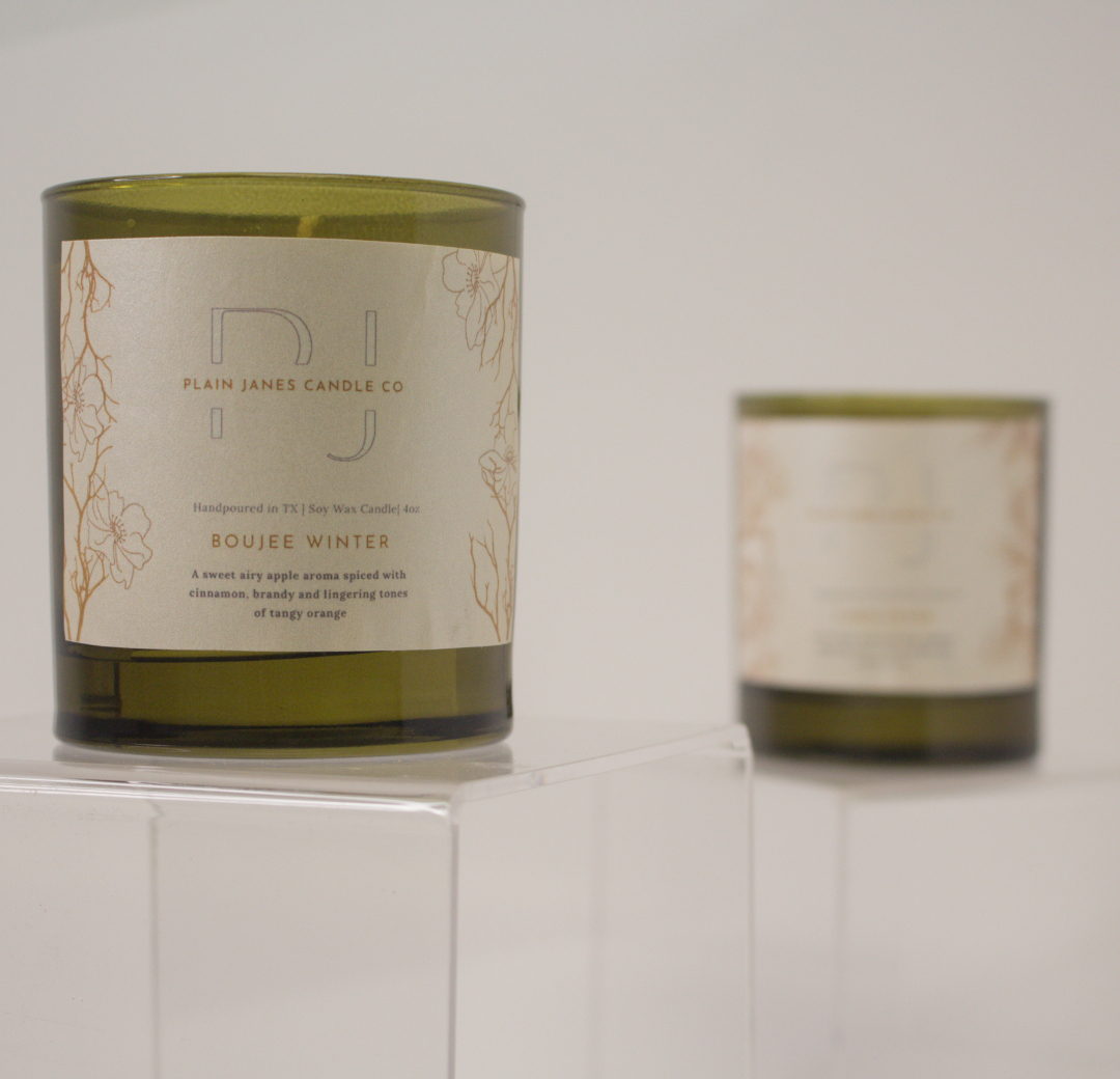 Plain Janes candles are made from all natural soy wax, fragrance oils that are vegan, phthalate-free, & cruelty-free, and are finished with 100% cotton wicks for a cleaner burn in addition to a 50% longer burn time!