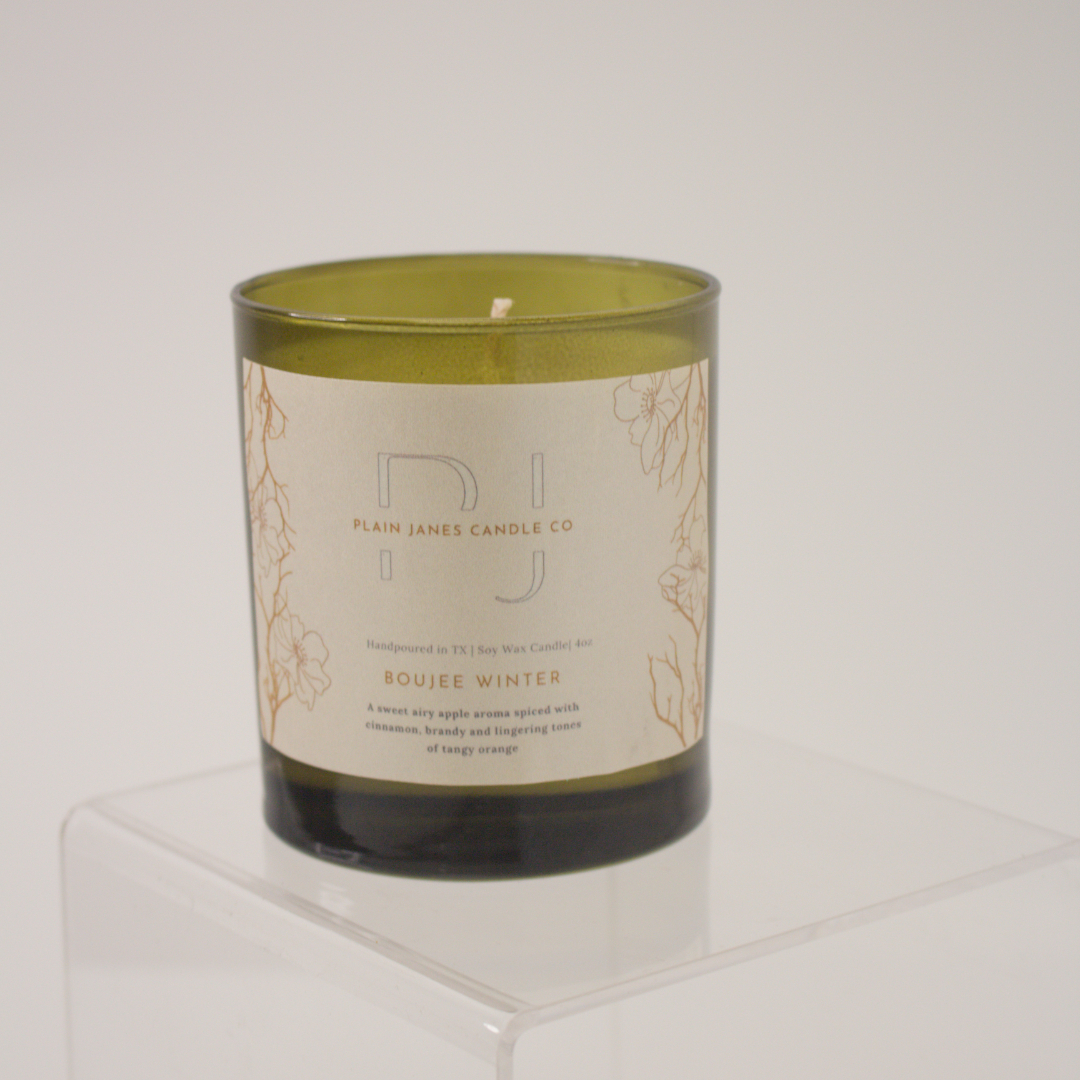 Plain Janes candles are made from all natural soy wax, fragrance oils that are vegan, phthalate-free, & cruelty-free, and are finished with 100% cotton wicks for a cleaner burn in addition to a 50% longer burn time!